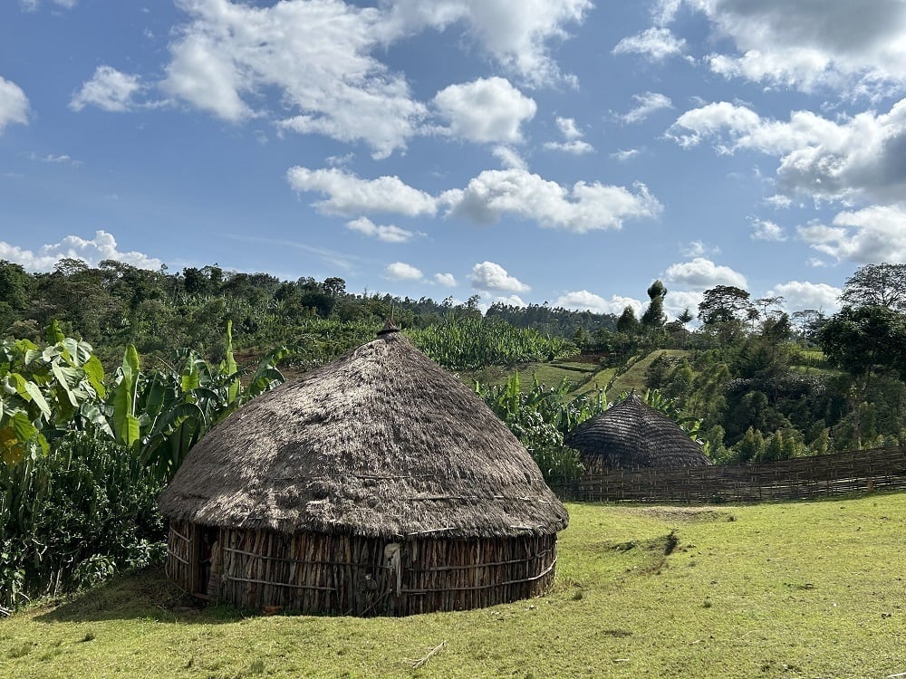 グジは首都アディス・アベバから、イルガチェフェまで南に400km(車で7~8時間)、さらにイルガチェフェから南東80kmあたりへ行ったところに位置します。日中25~6℃、低い時は5℃くらいまで下がります。標高は1,800~2,200m。朝は雲海が広がっており、とても幻想的な光景が広がります。