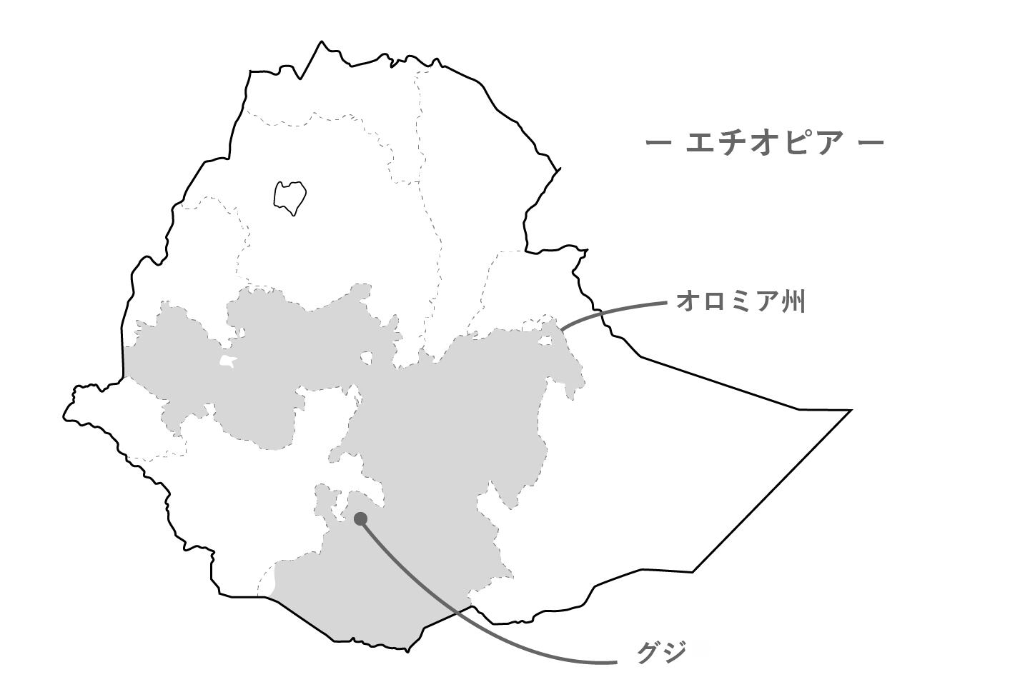 生産地概要:グジはエチオピア オロミア州の南部にあるコーヒー生産地域で、同じ南部にある「シダマ」「イルガチェフェ」と並ぶ、高品質なアラビカ種コーヒーの産地です。グジのコーヒーは、フローラル、ベリー、シトラス、紅茶のような華やかな香り、そして何より心地の良い酸質が特徴でアメリカや日本、北欧などで人気上昇中です。