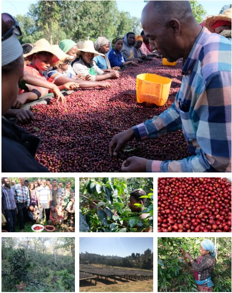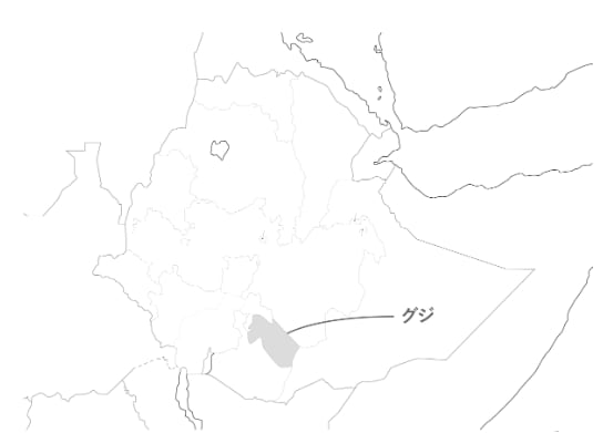 生産地概要:首都アジスアベバから南に約400kmに位置するシャキッソ村。元々は「金」採掘が有名な地域でしたが、2000年~2004年に連続した山火事が発生し、鎮火後に残った僅かな森林保護と生物多様性を豊かにするために、コーヒーとシェードツリーを播種・栽培し、コーヒーの生産を始めました。現在では、良質なコーヒーの生産地「緑色の金(Green Gold)」を生み出す地域として知られています。